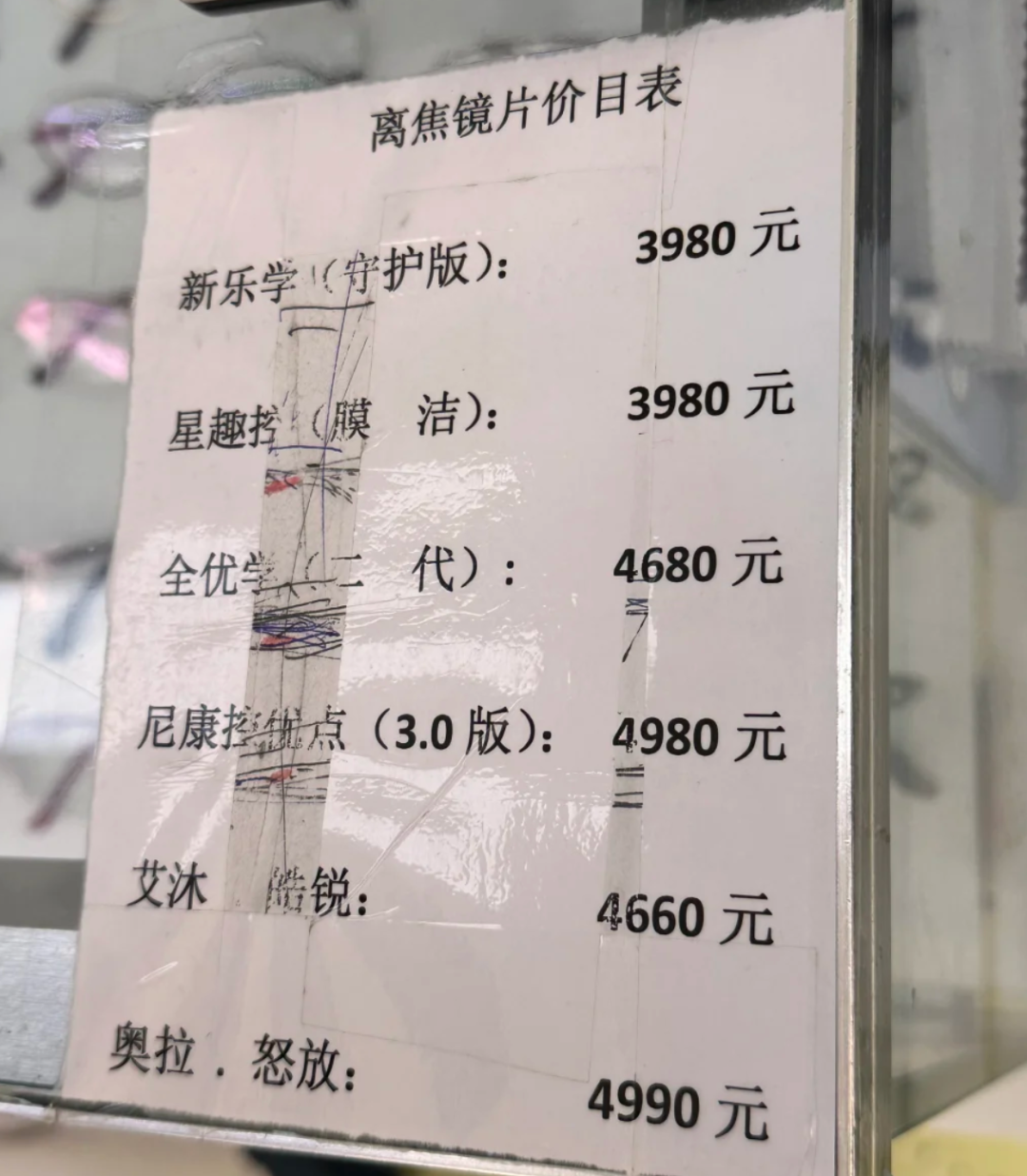 防控镜片中,国产品牌基础款仅需1399元,而国际品牌高端定制款价格可达3680元,价差超2200元;