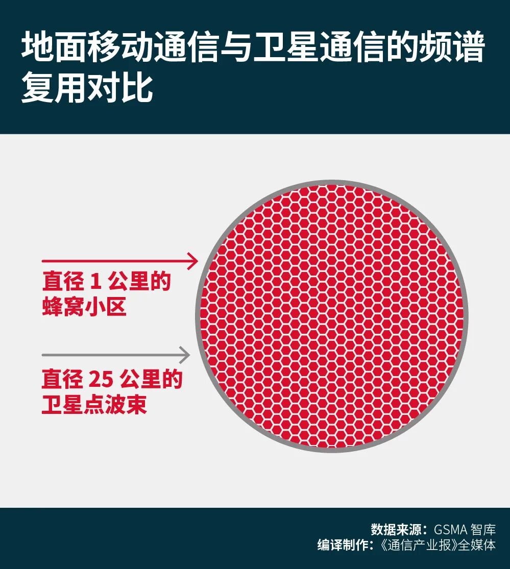 而另一项关键制约因素,卫星点波束覆盖范围过大问题,其根源仍是卫星与智能手机之间的传播距离过远。《报告》认为,尽管D2D标称速率看似较高(星链约17Mbps、AST约120Mbps),但这些速率均为单一点波束的总容量,而非面向单个用户的速率。若D2D的点波束覆盖直径为25千米,其覆盖面积约为490平方千米,该区域内的所有用户需共享这一点波束的总容量。这意味着,在人口密集的城市地区有约超100万人共享同一波束的容量;即便在农村地区,通常也有超10万人共享该容量。