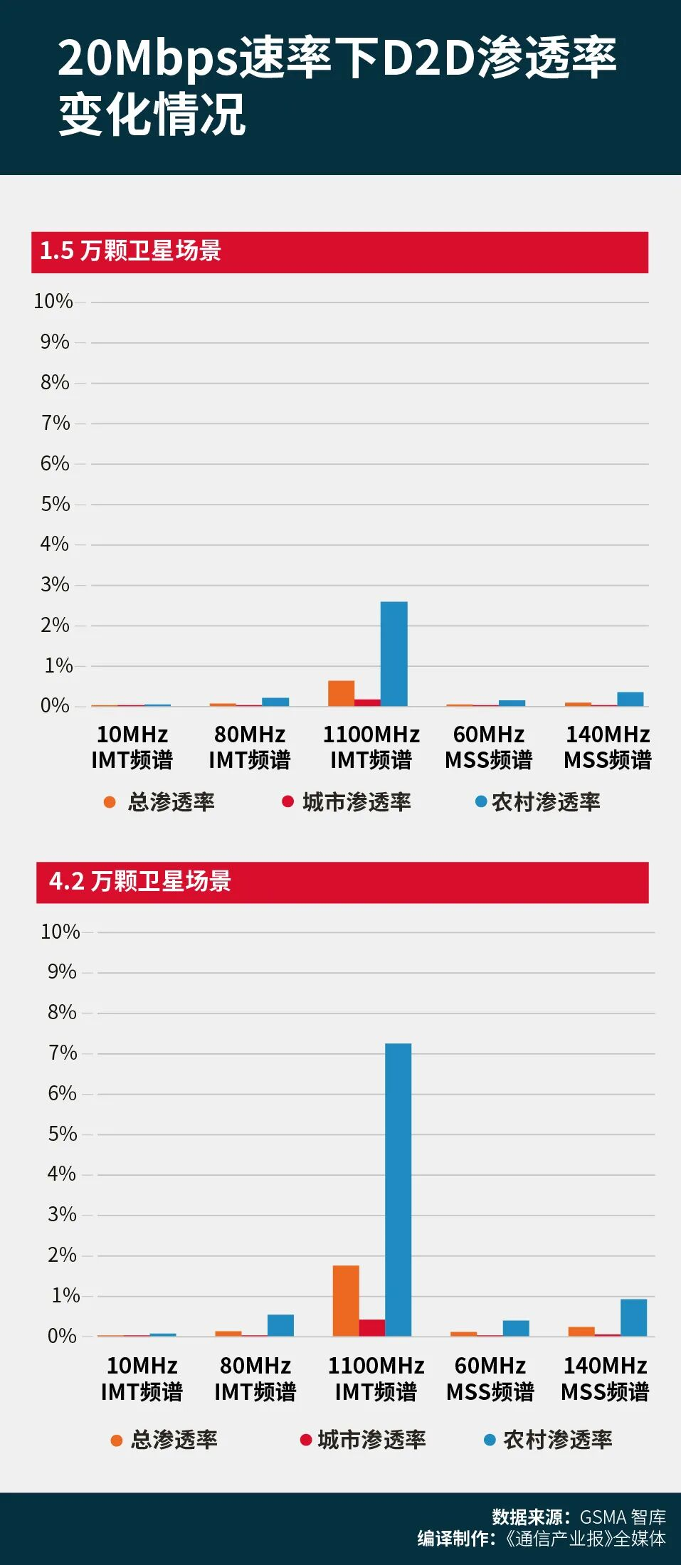 值得注意的是,目前国际主流的D2D通信方案所使用的带宽为10MHz,这意味着该服务的全球渗透率普遍在0.2%以下。
