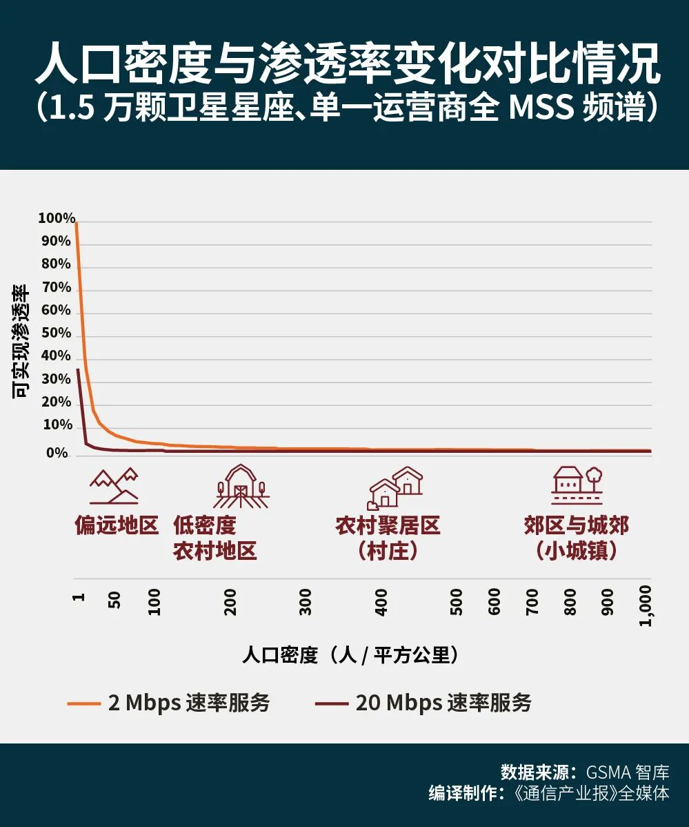 这些人口低密度地区,正是多数国家(尤其是低收入国家)的网络覆盖盲区,因为在这些地广人稀的地区部署基站的成本过高,商业回报率相对较低。《报告》认为,这正是D2D的价值所在——它能以极低的边际成本,为小范围用户提供充足的通信容量,成为地面网络覆盖的有效补充。