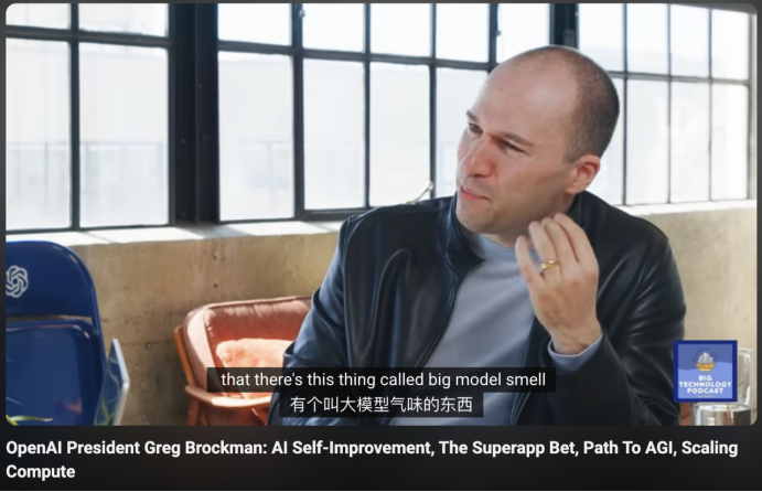 他甚至用了一个有点玄的词,“big model smell”,大模型的气息。