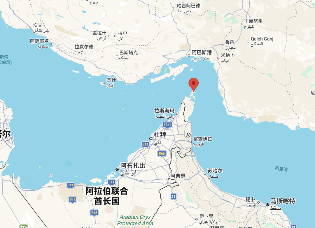红点处的库姆扎尔(Kumzar)与伊朗的阿巴斯港隔海相望