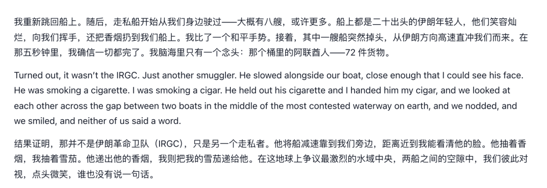 在各方面的努力下,3号分析师终于在阿曼找到一个愿意接受大价钱,开船载他前往霍尔木兹海峡的人。