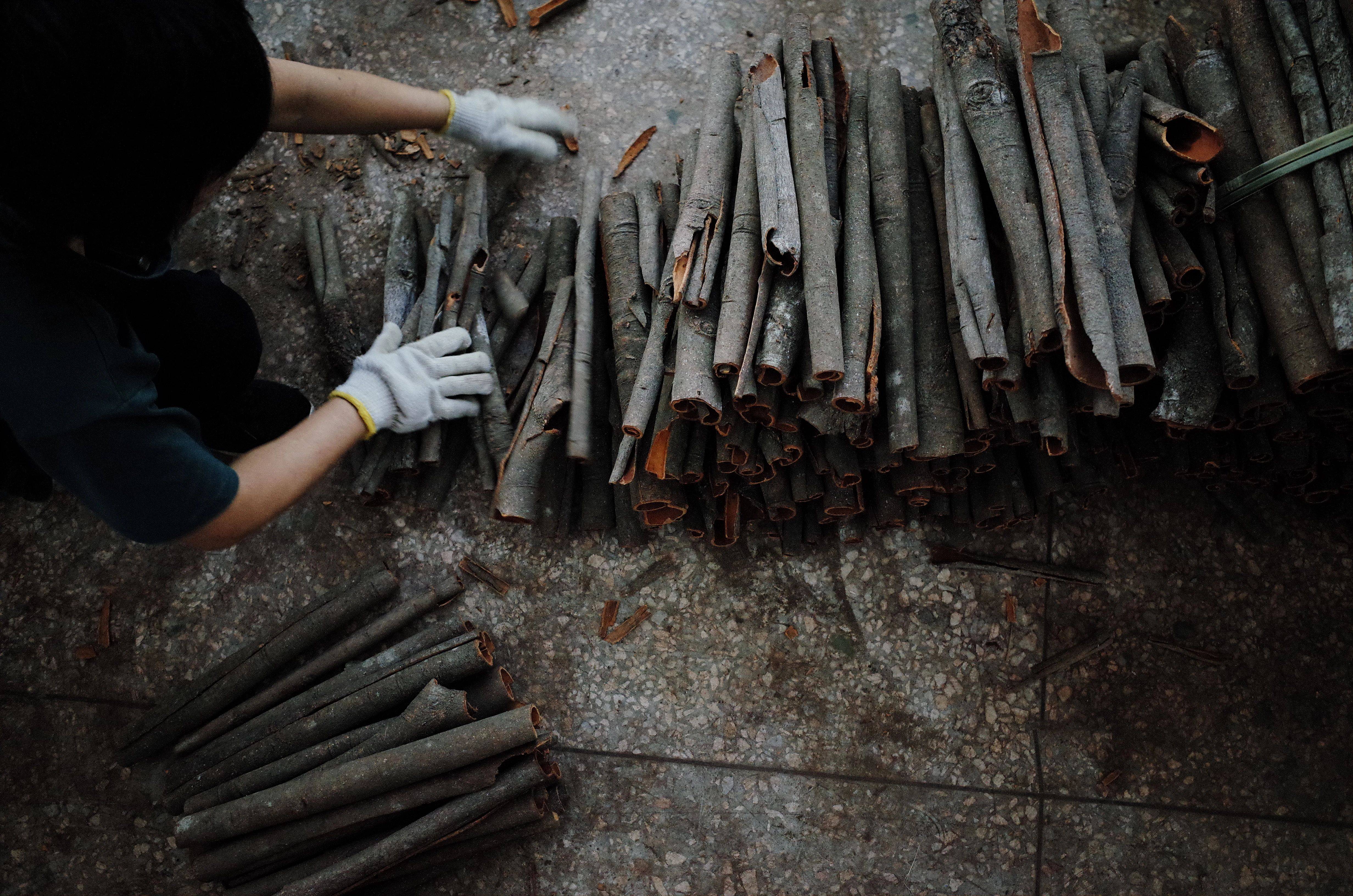 △ 加工厂员工整理肉桂 时代周报记者 黎广/摄