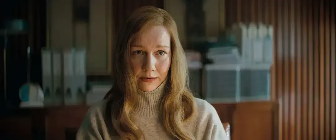 她留着温暖的金黄色长发,穿着lemaire风的毛衣风衣,几乎从头到尾都没有激烈的情绪起伏,“两杯咖啡都是我的”就是她会说出来的台词。