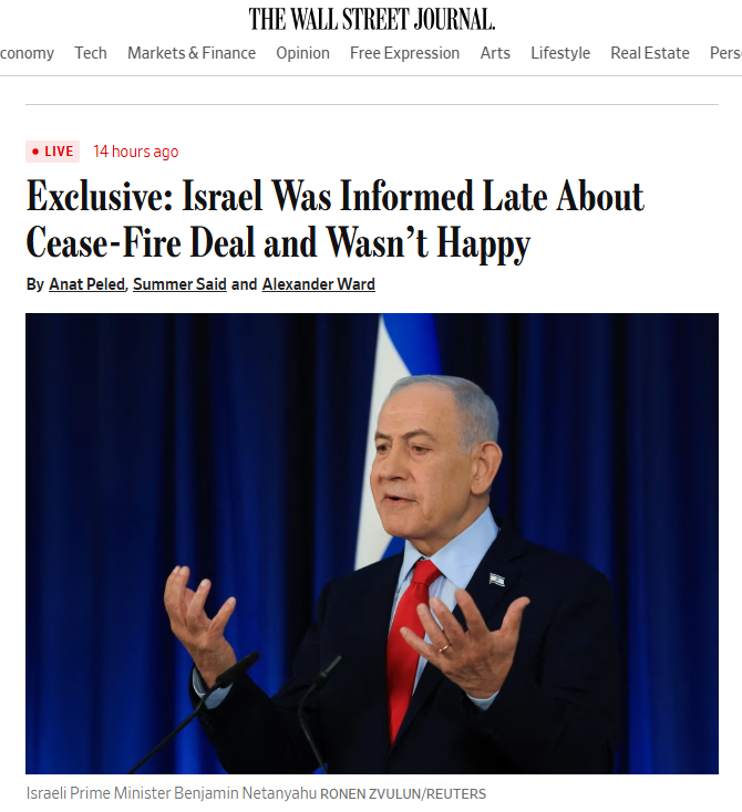1. 以色列对停火安排非常不满。《华尔街日报》独家报道,以色列在美伊协商停火的过程中没有与以方协商,沟通的程度仅限于特朗普在宣布停火之前不久的最后一刻,给内塔尼亚胡打了一个电话。对此,以色列感到非常不满——对缺乏沟通不满;对停火本身不满,对条款也不满——尤其是将黎巴嫩纳入协议的部分:以色列认为伊朗和黎巴嫩是分开的两个战场。内塔尼亚胡明确对外表示,他同意对伊朗停火,但停火协议不包括黎巴嫩,同时以色列“随时准备恢复对伊朗的军事行动”