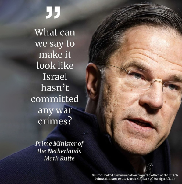 北约秘书长(时任荷兰首相马克·吕特):“我们要怎么说,才能让以色列看起来没有犯下任何战争罪行?”