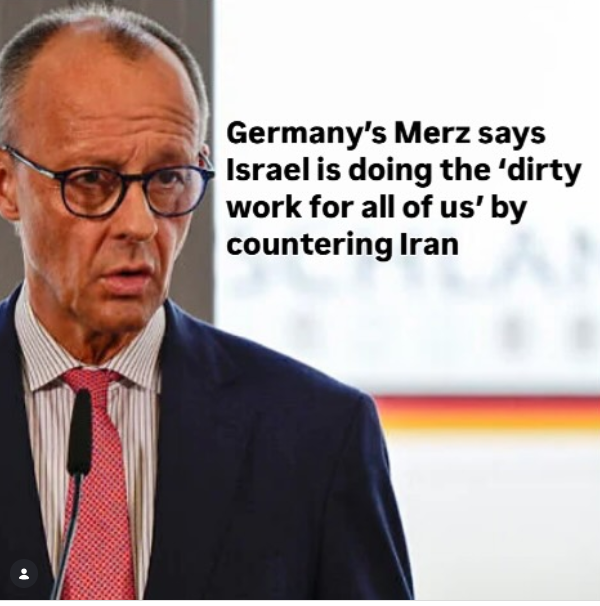 德国默茨:“以色列通过对抗伊朗,正在为“我们所有人做脏活”。