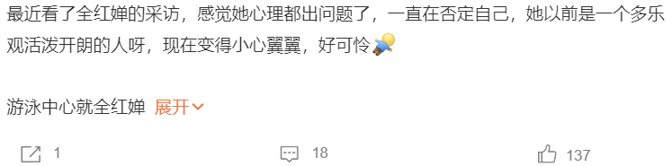 正如很多人所说,全红婵所在的圈子过度消费她,却没能好好保护她,使得她还没有真正接触社会、独立成长,就被夹在二元极化的舆论浪潮中走向迷失。