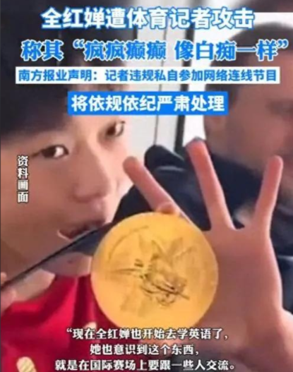 当初全红婵爆火时,就因过度曝光,招致一名记者不满,批评其「疯疯癫癫」「白痴一样」。