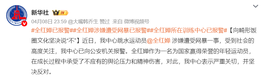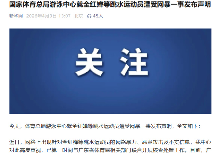 最终,4月8日,全红婵所在的国家训练中心发布公开声明: