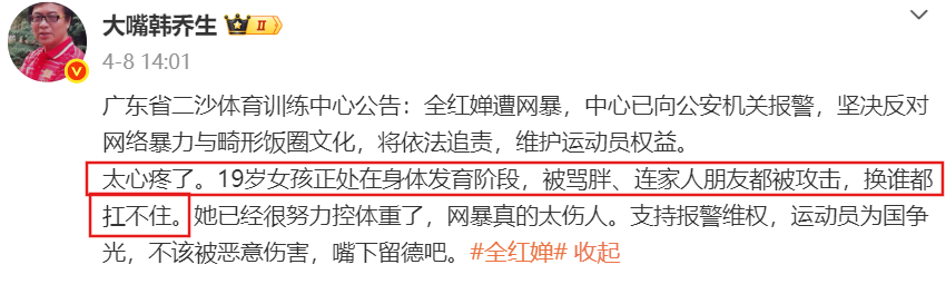 随着更多细节被披露,很多圈内人士也纷纷为全红婵发声。