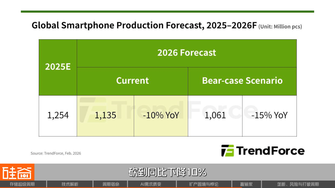 手机市场最先遭殃,小米、OPPO出货预测下调超过20%,vivo下调近15%。TrendForce直接把2026年全球智能手机生产总数预测,砍到了同比下降10%。魅族宣布取消魅族22Air的上市计划,因为成本扛不住了。Nothing的CEO裴宇在社交媒体上感叹:小公司不得不寻找其他出路。