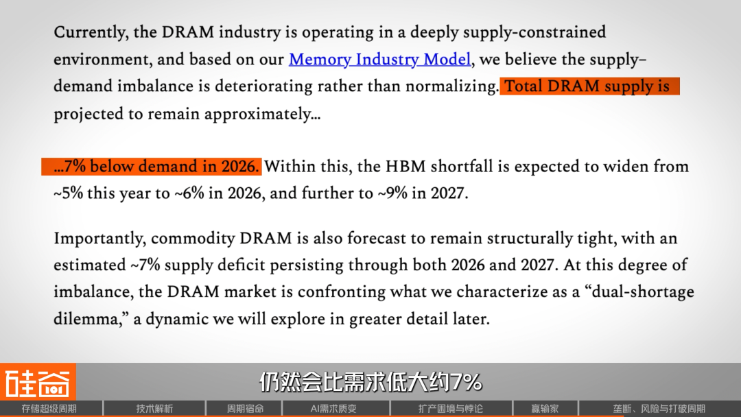 SemiAnalysis认为,2026年总DRAM供给仍将比需求低约7%。在HBM这条线上,供需缺口到2027年还会继续扩大。至于新增供给,真正有意义的产能更可能要到2027年下半年才陆续出现。如果按野村证券的口径,真正体现在产量上的增量,甚至要等到2028年。