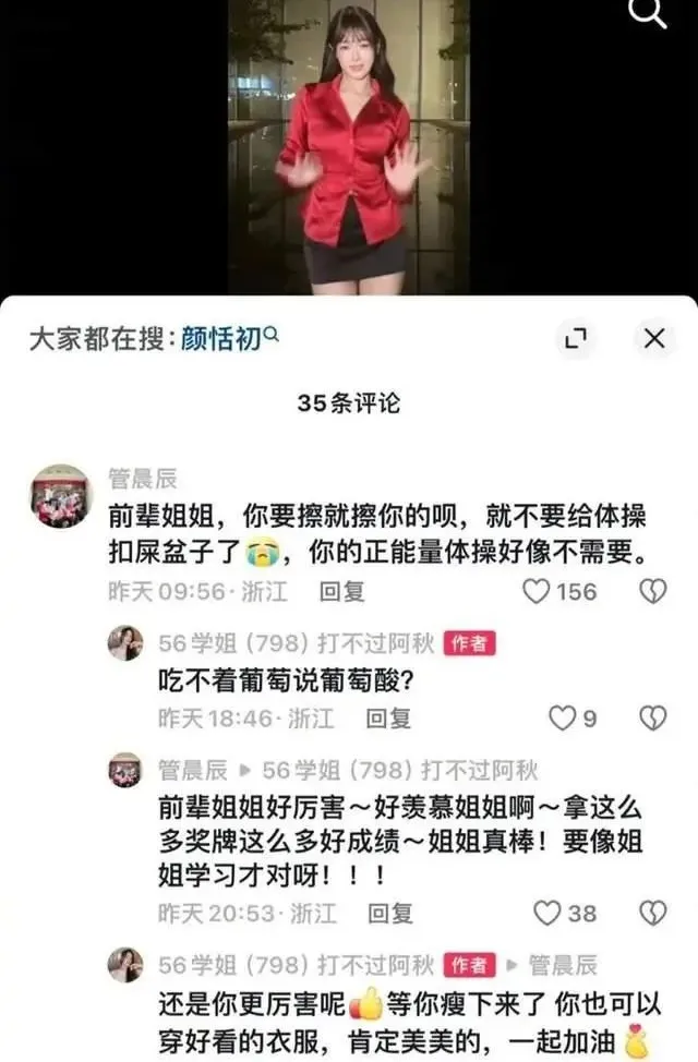 她直播跳舞,被金牌选手管晨辰的一句“擦边就擦边,别给体操扣屎盆子”拉入了战场。