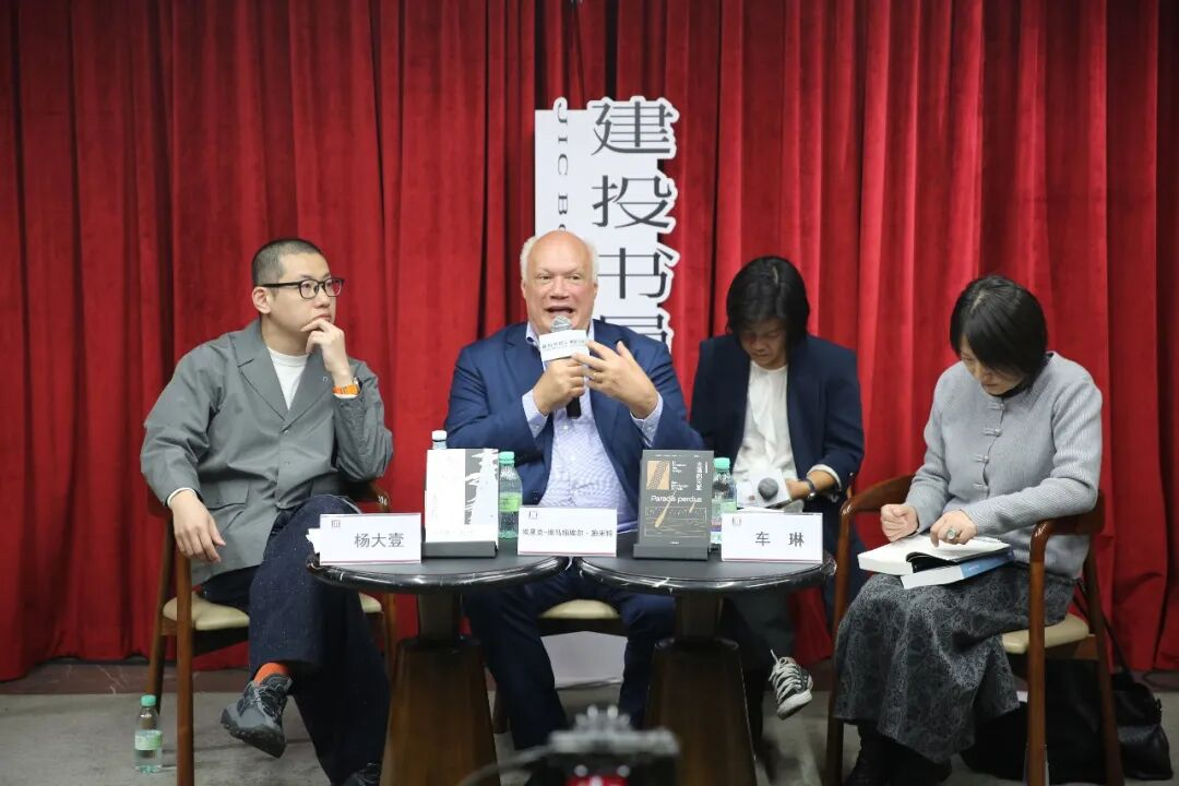 欢迎各位来到建投书局现场,非常高兴又跟大家见面了。这也是我第一次和施米特先生见面,和车琳老师一起跟大家分享“时间旅行者”系列的《失落的天堂》和《天空之门》这两本书。特别感谢胡瑜老师的现场翻译。