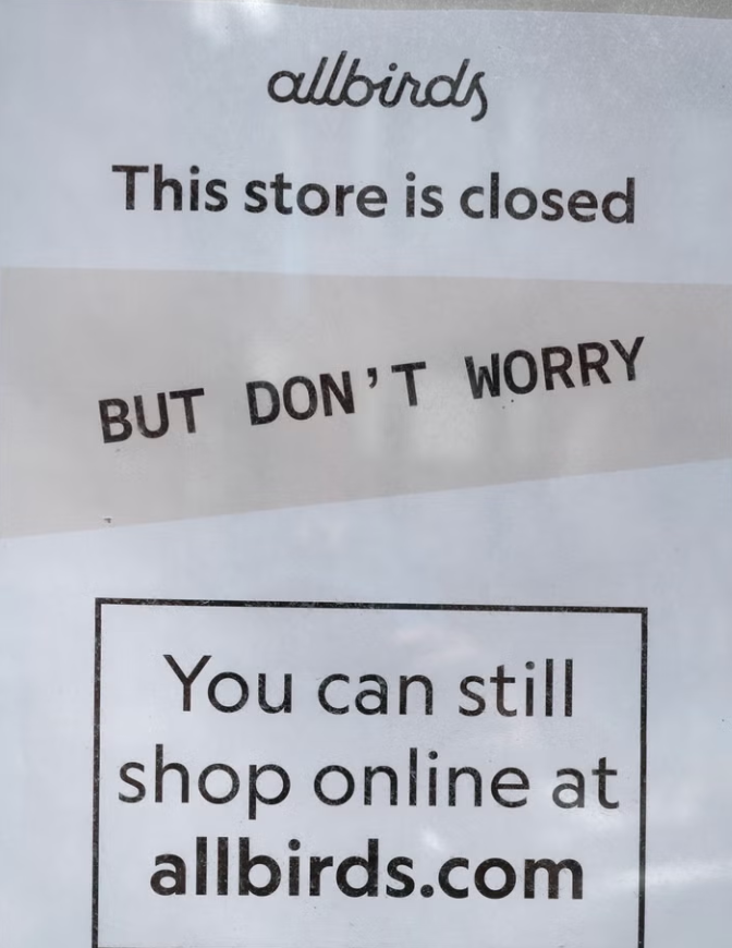 更令人唏嘘的是,就在交易宣布前不久,Allbirds刚刚关闭了美国所有正价门店,仅保留两家奥特莱斯和伦敦两家正价店。全球门店从高峰期的60多家骤降至约4家。