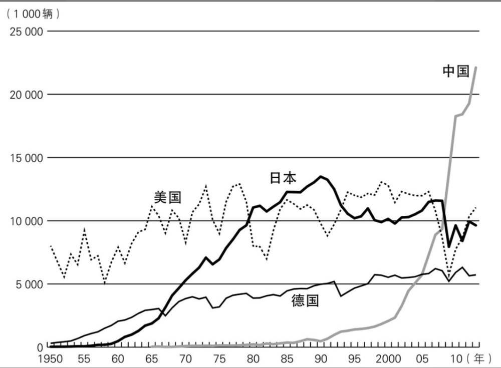 野口悠纪雄所写的《战后日本经济史》提到,日本汽车产量在1980年超过美国,成为世界第一,达到1104万辆,占全球总产量30%以上。