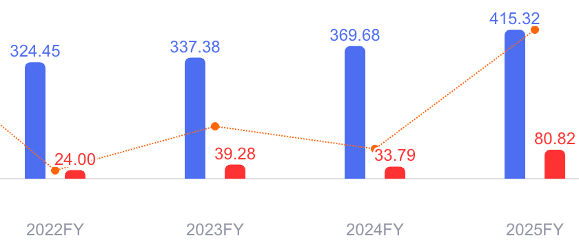 SAP财报(蓝:营收,红:利润)