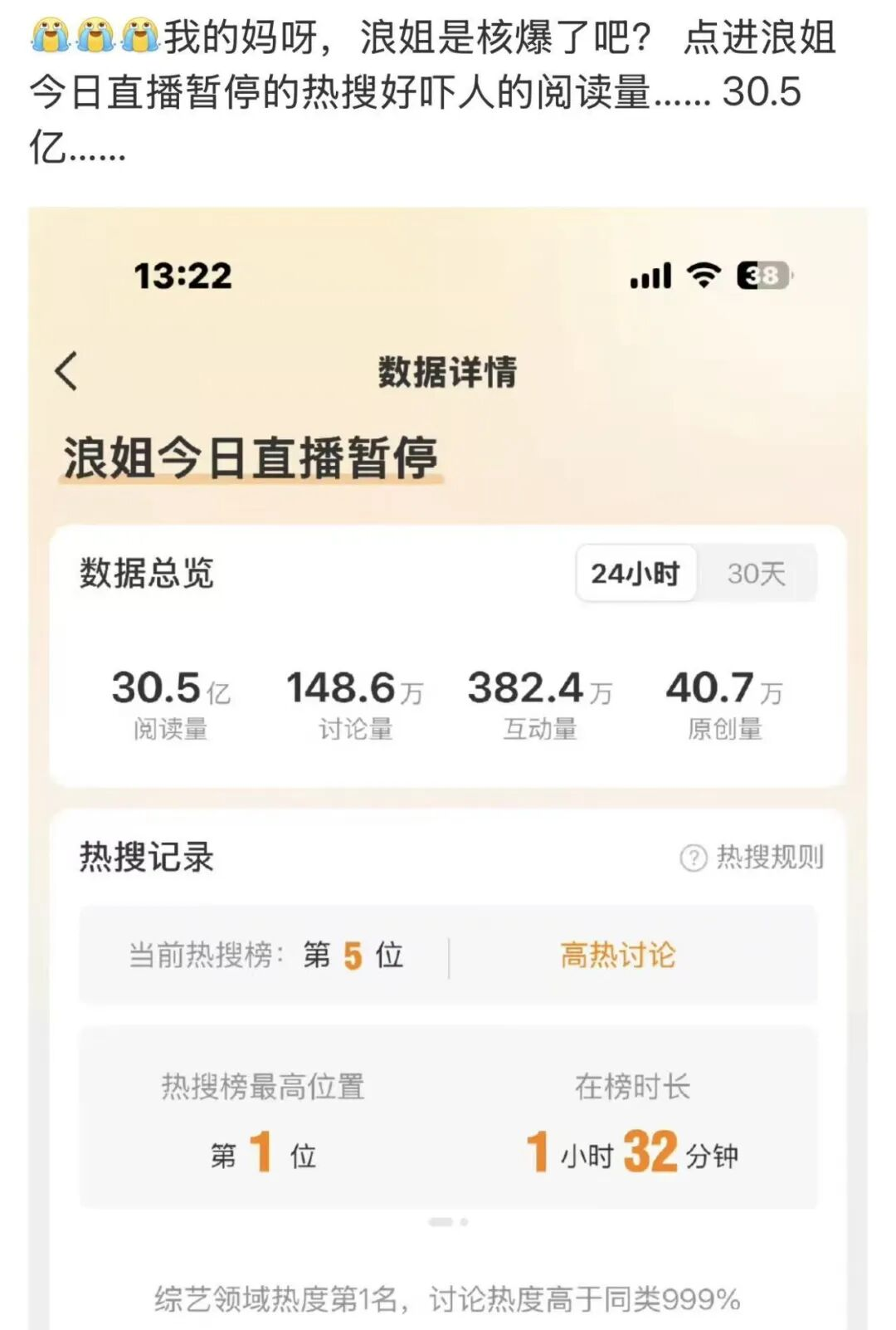 但《乘风2026》的开播改变了这一切。初舞台刚播完,关于票数、规则、评委标准的争论就已经闹得不可开交;一公结束,“对口型”“假唱”“赛制不公”等词条轮番冲上热搜;有人因为淘汰崩溃痛哭,有人直接发文表达不满,观众也迅速分阵营,站队、复盘、翻细节,甚至逐帧分析舞台。