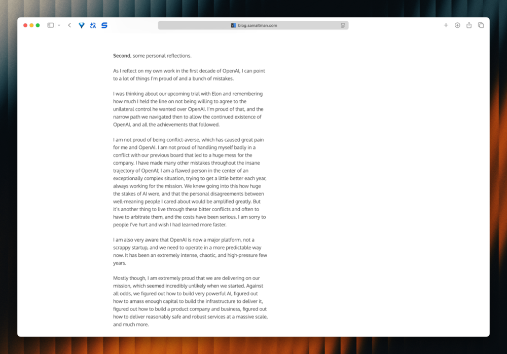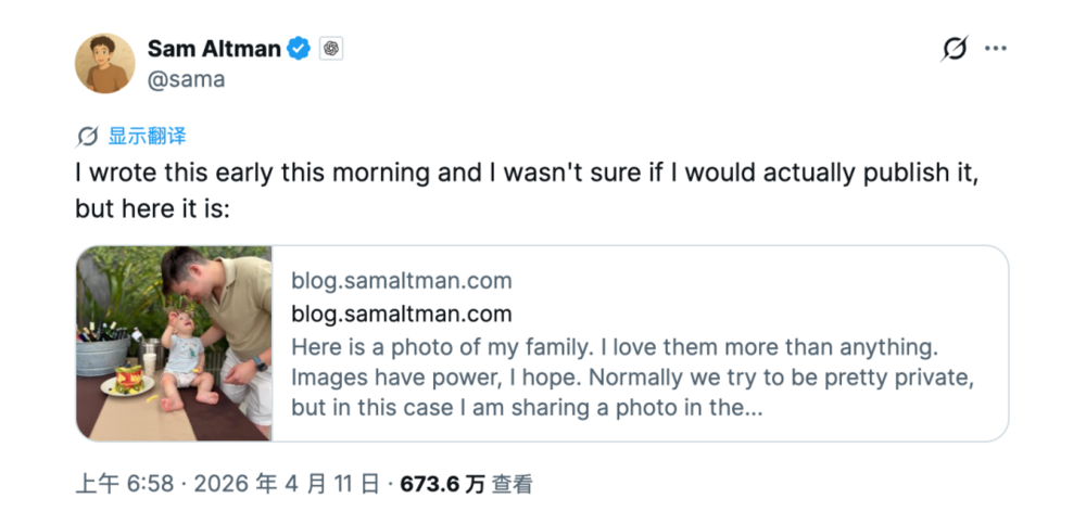 Sam Altman 发布博客长文回应袭击事件