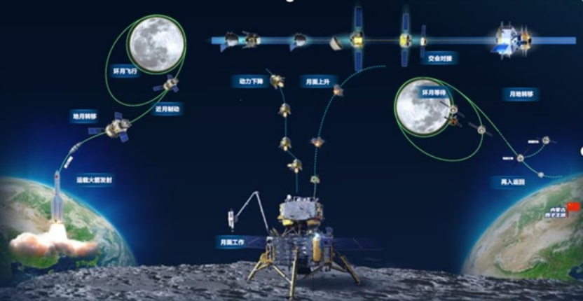 图:嫦娥五号采样返回任务过程示意图。其复杂程度堪称一次迷你版的载人登月。