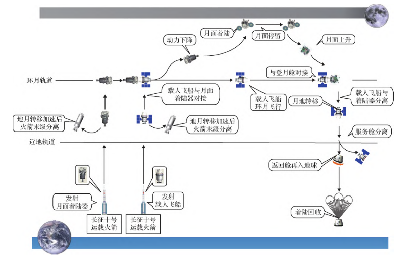 图:文献报道的我国载人登月任务总体飞行方案