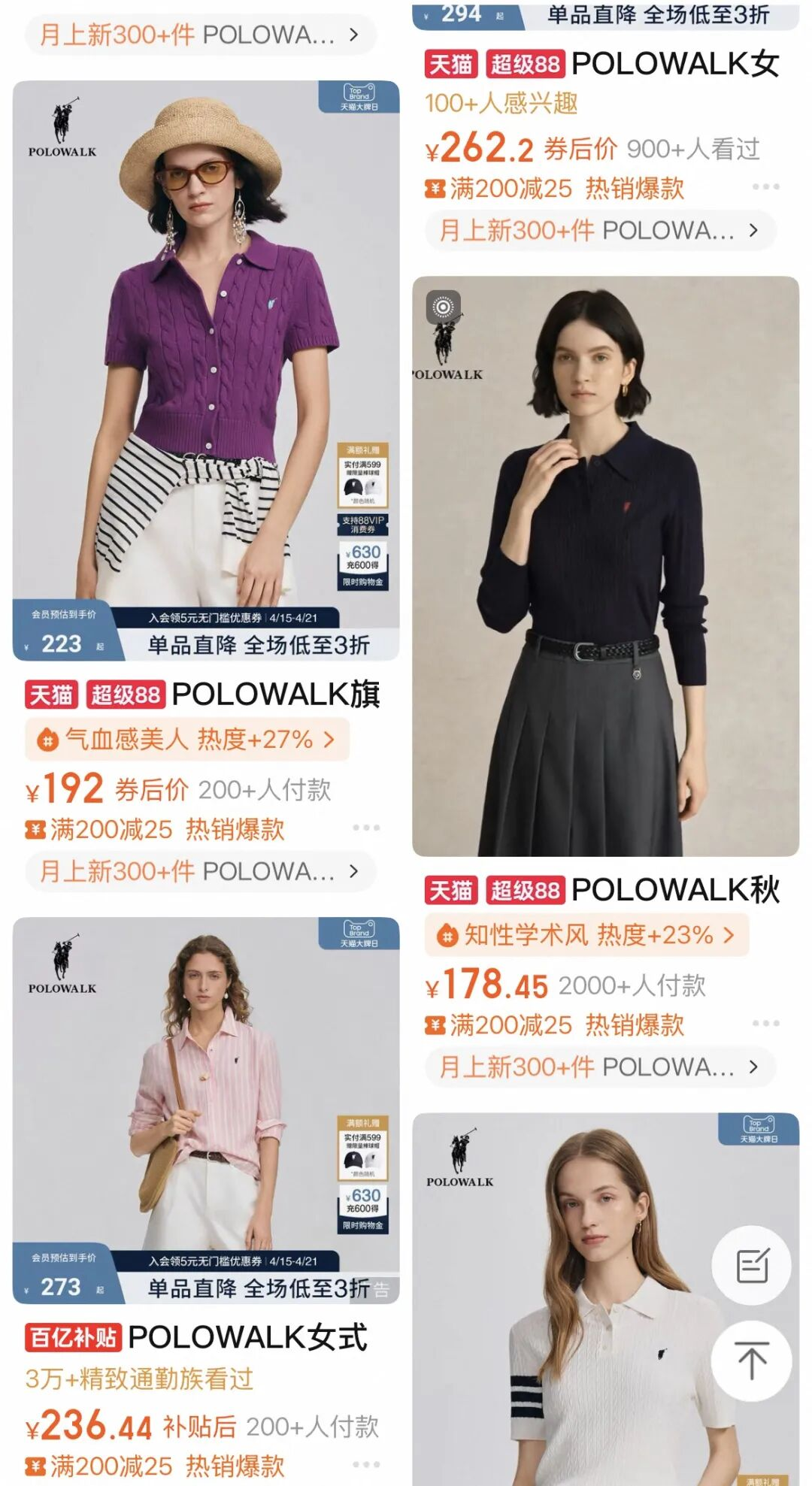 除了便宜,POLOWALK的自我要求也很高。和ZARA一样,POLOWALK的上新速度很快。哪怕是同样的版型,也会在颜色上进行创新,让消费者萌生出总是走在潮流最前端的幻觉。