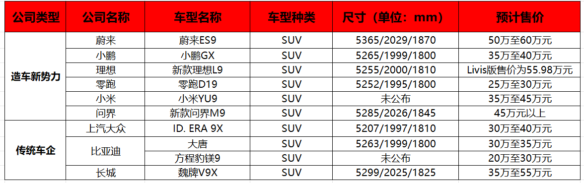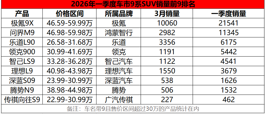 但是,当我们把目光聚焦到车名带9,且售价区间跨越30万门槛的“9系旗舰SUV”阵营,一组销量数据刺穿了表面的喧嚣: