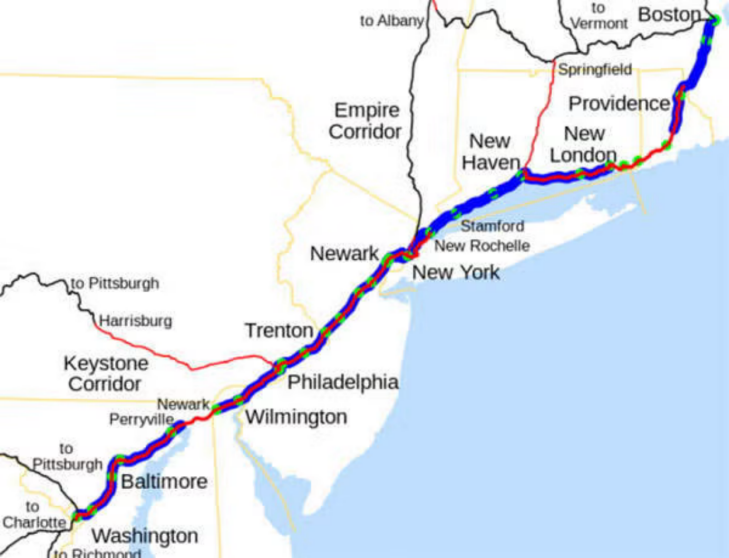 目前美国最接近高铁概念的,是美国铁路公司Amtrak在东北走廊运营的Acela列车,号称美国“第一条高铁”。去年,Amtrak终于把新一代Acela投入运营,在客运量最大的波士顿-纽约-华盛顿特区东北走廊线路(NEC)开始载客。