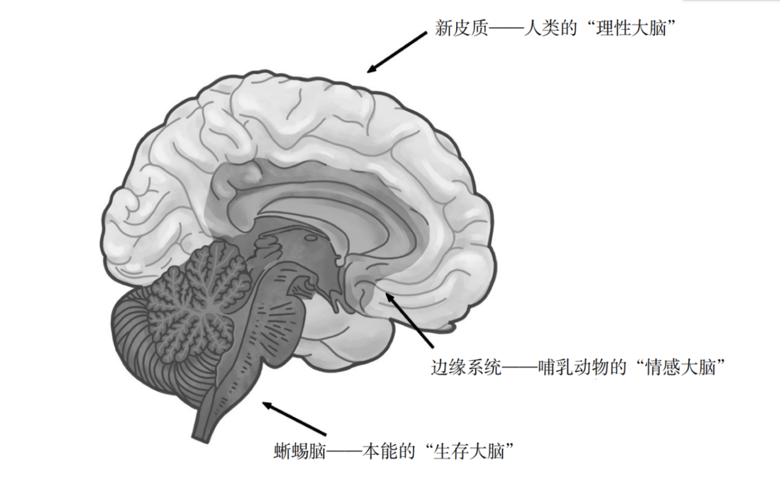 在大众文化中,有一个流传甚广的“三重脑”理论:大脑由内而外分为三层——最里面的“蜥蜴脑”负责本能与生存,中间的“边缘系统”负责情绪,最外层的“新皮质”负责理性。理性战胜本能,便是文明;本能压倒理性,便是堕落。