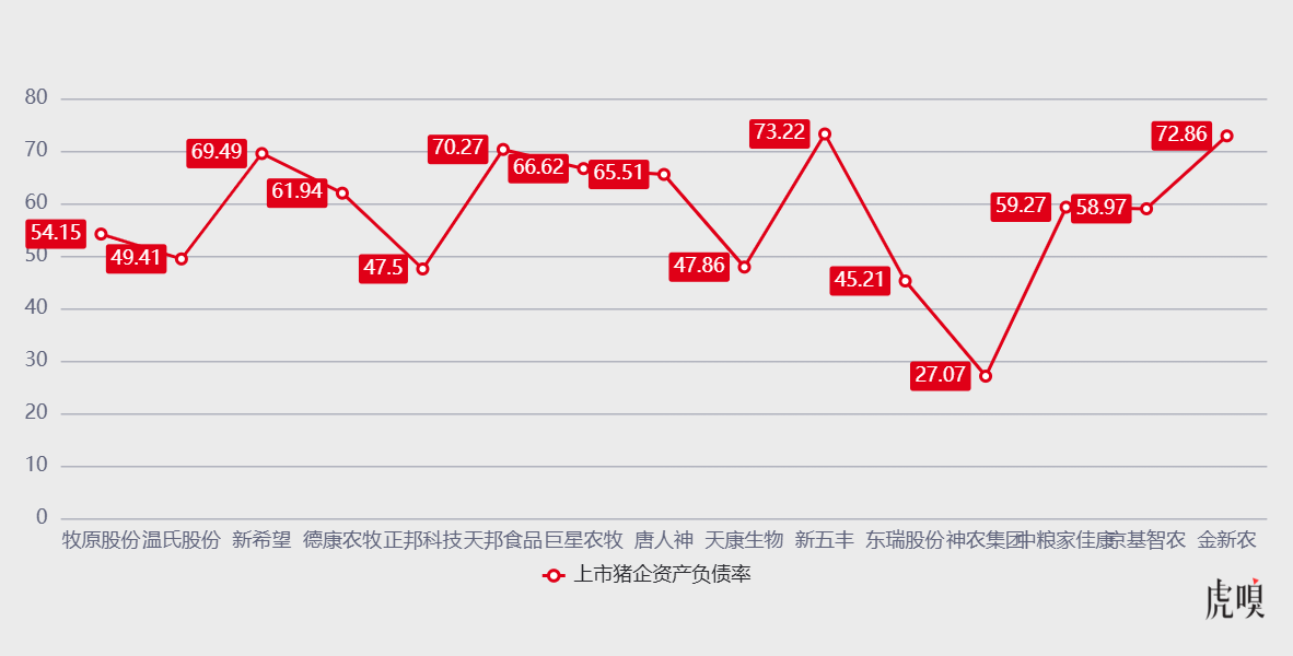 二是资金压力:资金压力越小,企业抗风险能力越强;反之,一旦猪企资金链趋紧,不仅扩张能力受限,基本的经营存续都会面临压力。而衡量资金压力的一个直观指标就是资产负债率。