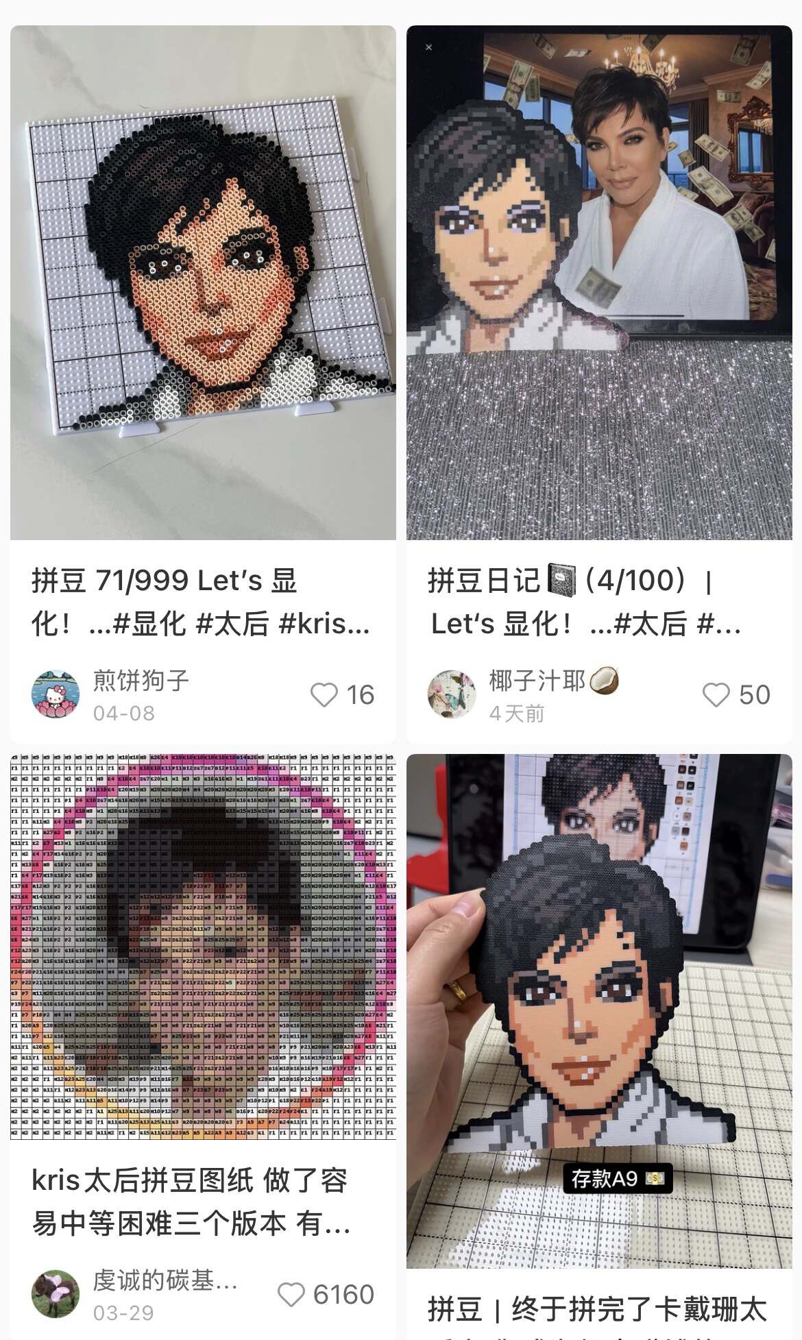 还有能工巧匠,把Kris Jenner这位富态者的脸做成拼豆手工挂件,随身携带祈福。