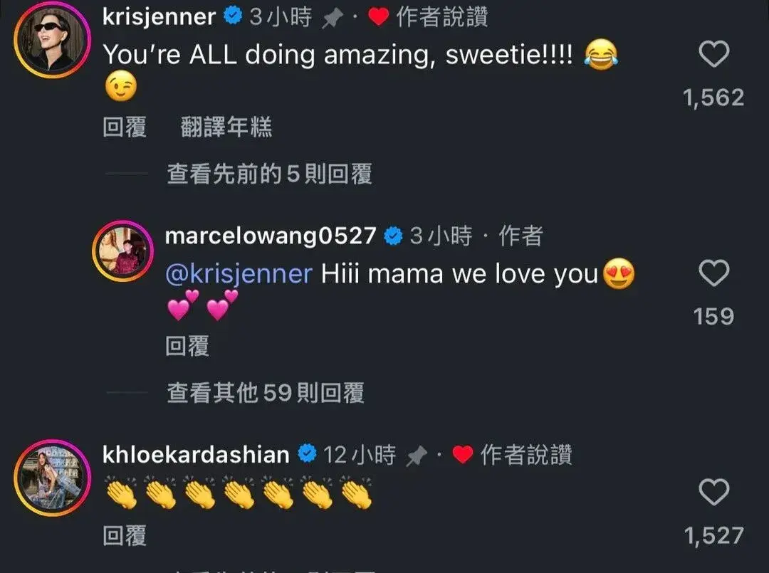 一位名叫@Marcelowang的TikTok博主将这次事件搬运到了外网,被Kris本人点赞,并且回复了她在真人秀里的那句名言:You're ALL doing amazing sweetie! (孩子们做得好!)