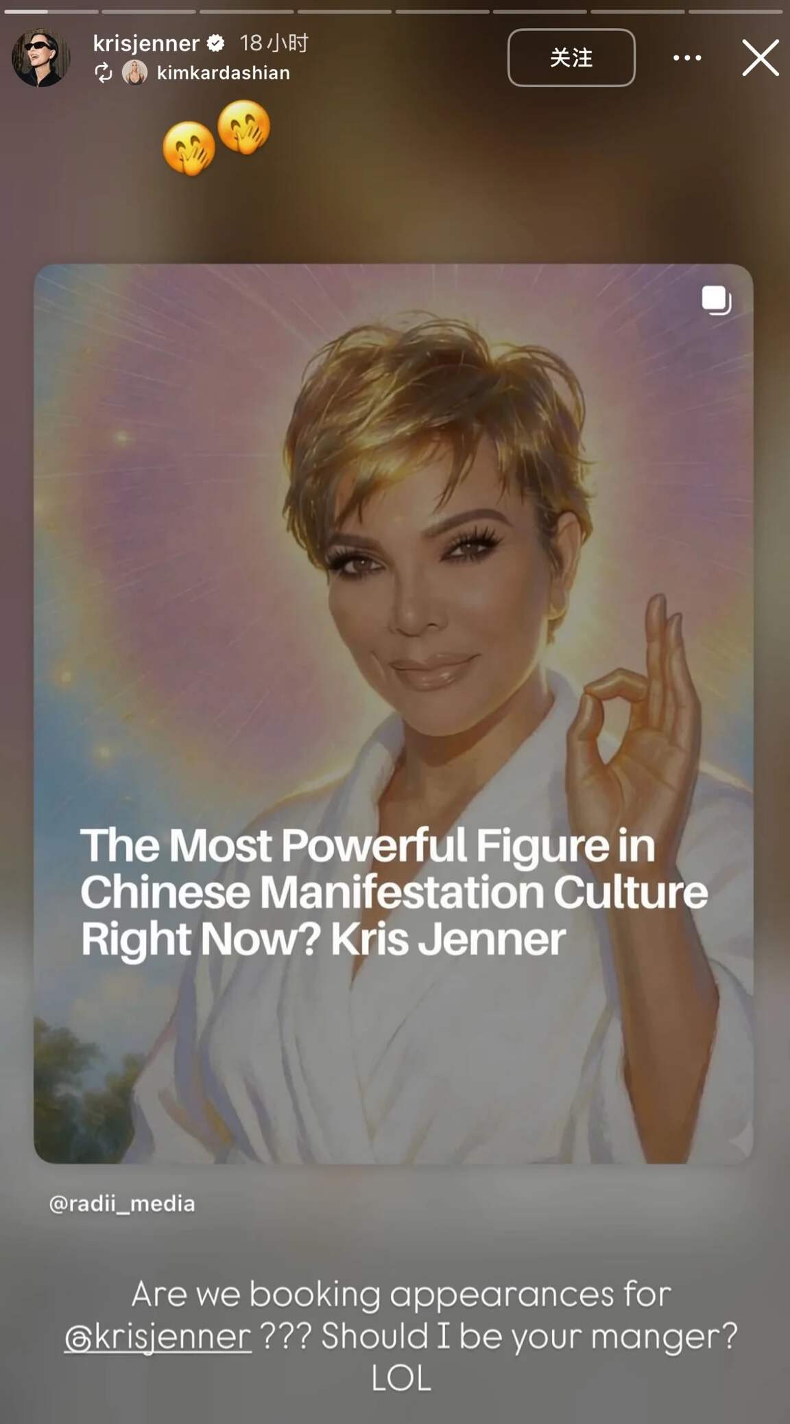 有医生、老师、会计、金融、电工、空姐、律师,还有正在备考冲击上岸的雅思留学群体和考编考公群体。抛开行业不谈,Kris Jenner已经变成了抽象意义上统管一切的吉祥物,只要你拜了她,就能事业财富双丰收。