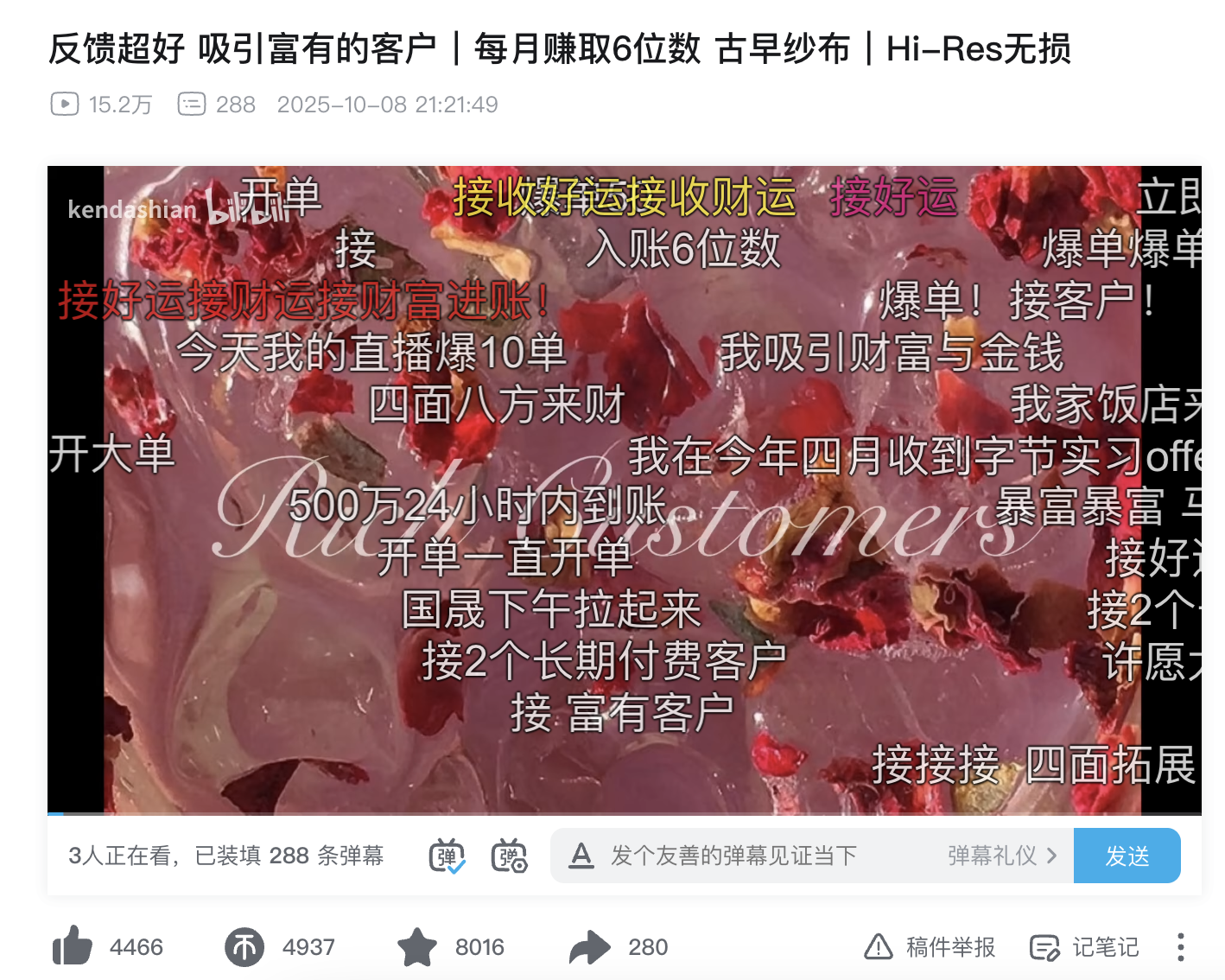 如果这也是ta的“显化”,那ta确实把广告收入“显化”进了自己的赛博功德箱。