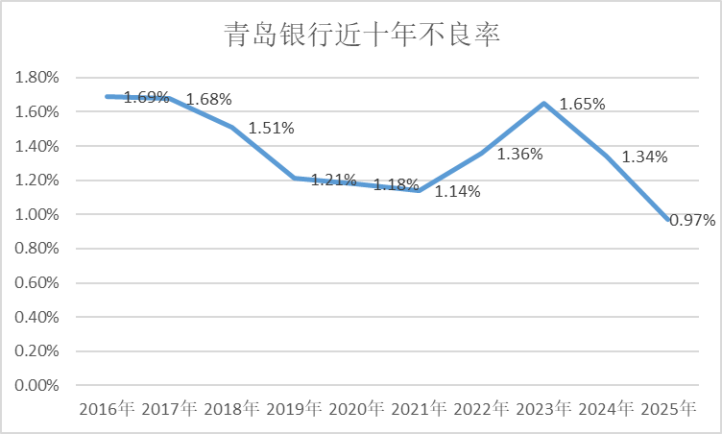 在规模扩张的同时,青岛银行的净息差仅小幅下滑6个基点,体现出新增贷款结构具备一定收益支撑,带动利息净收入同比增长12.11%,在上市银行中也是比较炸裂的存在。大银行的利息净收入惨不忍睹,国有六大行有五家在2025年利息净收入是负增长的。相比之下青岛银行确实表现不错。可惜中间业务不给力,在资本市场表现很好的情况下,手续费与佣金收入还下滑了3.84%。否则业绩还会有更好表现。