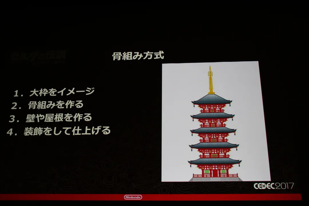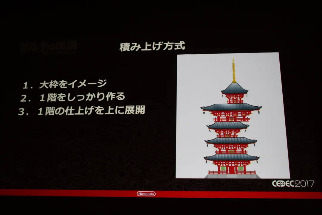 任天堂系统架构师冈村祐一郎提到,游戏制作流程大致可以分为“堆叠开发”和“框架开发”两种,他以五重塔的建筑为例解释了这两种方式。