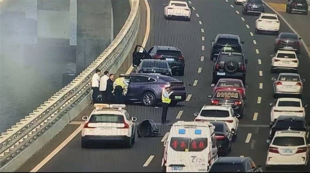 2025年青岛胶州湾高架,智驾无故退出后车辆突然偏离车道。