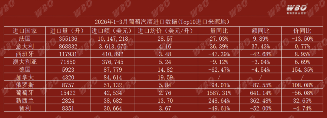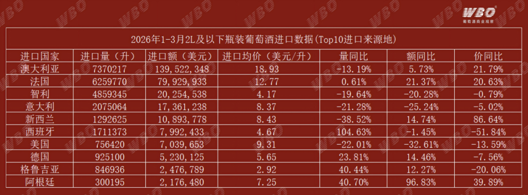 一位曾经做西班牙酒的进口商苏伟提到,前几年市场上有不少库存尚待消化,去化周期被明显拉长,从数据上看,可能是之前的库存有所消耗,由于去年基数低,所以今年只要有进口,就会造成同比大增的情况。“之前,我身边有一些做西班牙酒的进口商,现在转移到澳大利亚了,起泡酒则转向意大利,把资源优先投向那些周转更快、动销更稳、利润更清晰的来源地。”