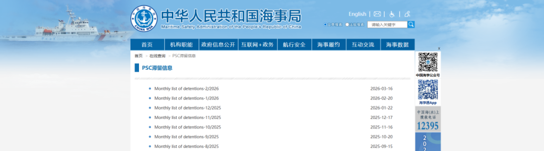 中华人民共和国海事局官方网站港口国监督(PSC)滞留信息