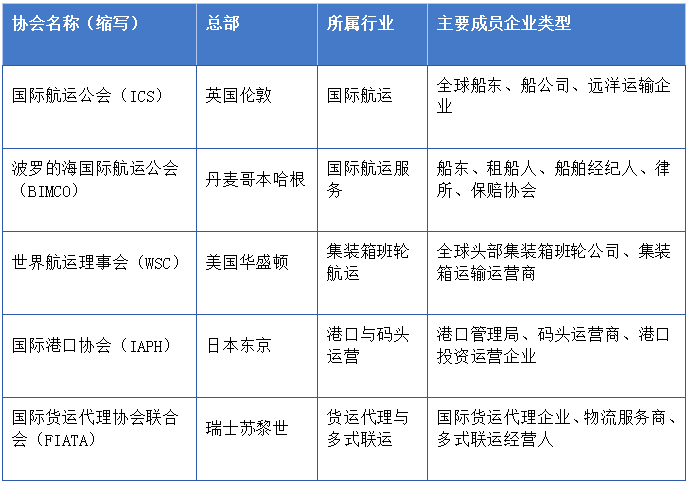 国际航运相关主要行业协会概况作者制表,下同