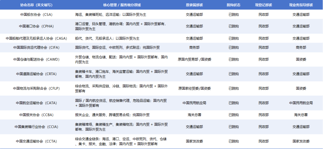 国内航运物流相关行业协会概况