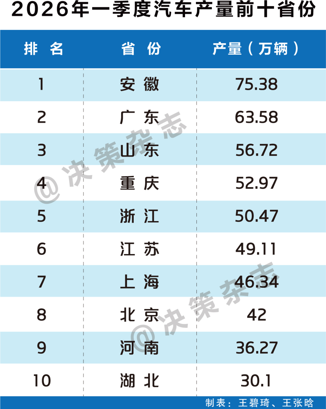 本文来自微信公众号: 决策杂志 ,作者:李润媛,原文标题:《最新发布!一季度汽车产量十强省来了》