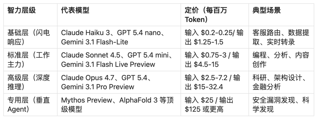 词元成本的跨速下降将为 2.0 流量规模提供基本盘——当每个人同时运行数个智能体工作时,词元消耗将呈指数级增长。而词元服务分级则为商业价值提供极值参考——基础层是“自来水”,专用层是“半导体制造级超纯水”,后者单价可达前者百倍。流量 2.0 的商业空间远不止便宜的日常助手,更包含昂贵但不可替代的高端智力服务。这进一步意味着:80% 的日常生产力负载由标准层承担,基础层支撑起海量普惠 AI 服务的底层规模,高级层则为科研和金融等高净值场景提供溢价空间。