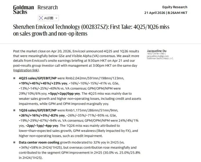 截图自:4月21日高盛发布的英维克研报