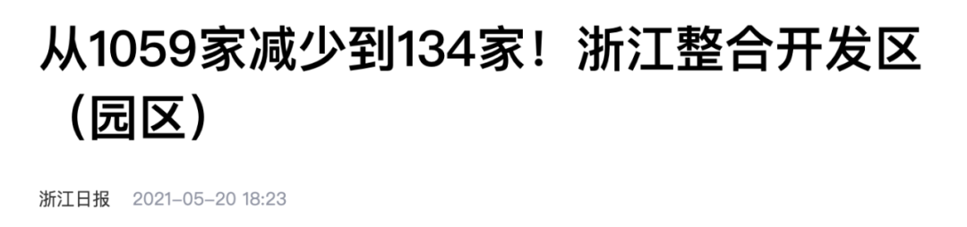 浙江的行动更早,动作也更大。早在2021年,就将全省开发区(园区)由1059家减少到134家,缩减幅度超过80%。