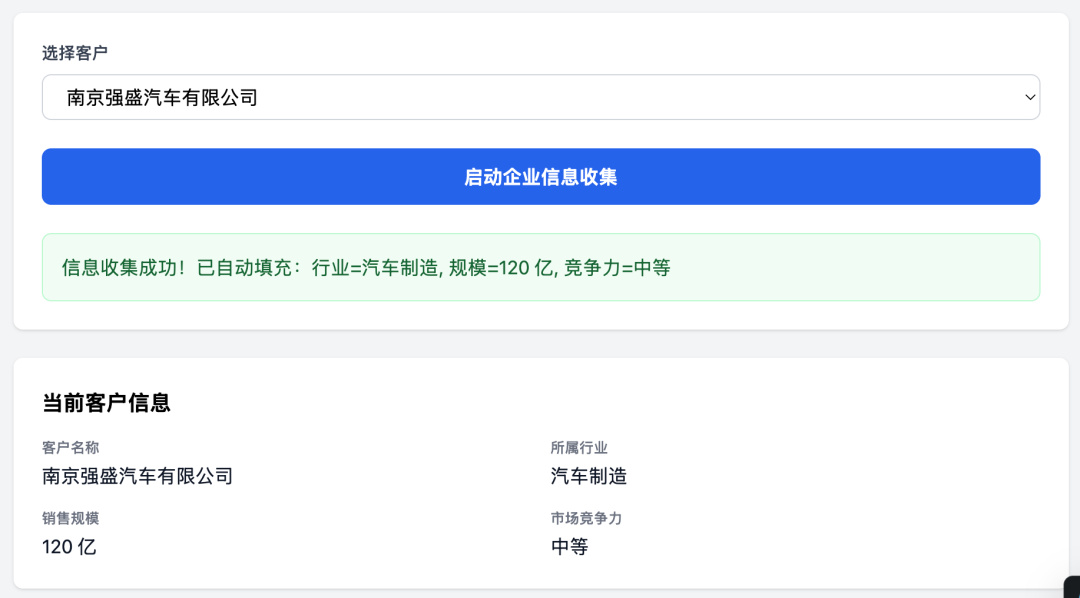 这些关键信息可能来自互联网,也可能来自上传的拜访记录,AI完全有能力自动处理。