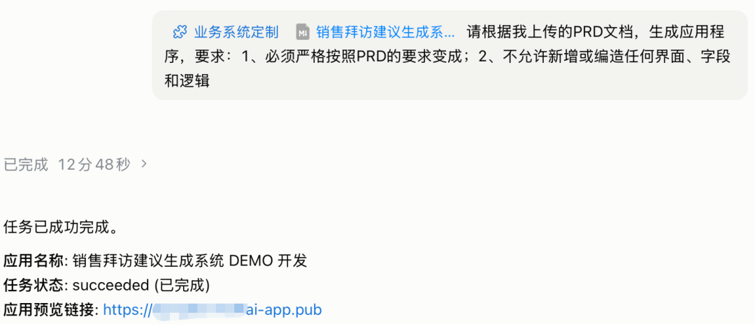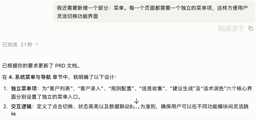 网上好多人“一句话”生成应用,但这种Vibe Coding可能更适合成熟的应用。开发AI原生CRM这种创新应用,我还是建议大家先写PRD,避免AI幻觉。