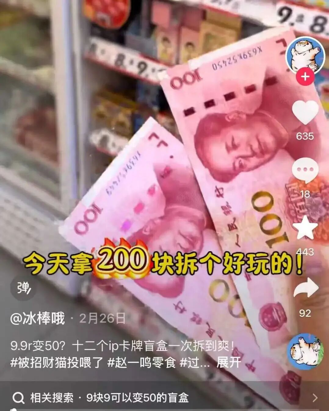 但另一边,第一批在零食店门口蹲盲盒的年轻人早就偷着乐了。